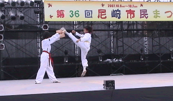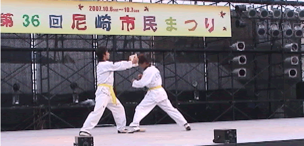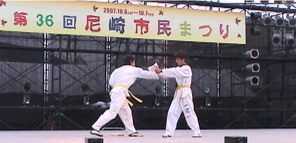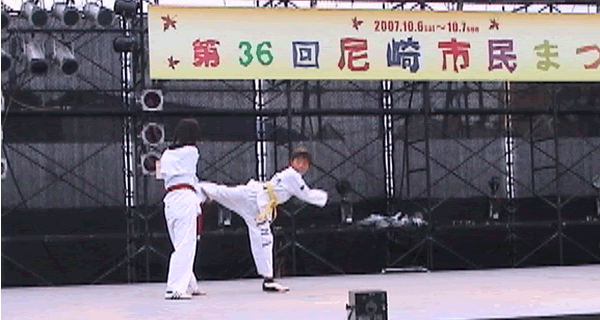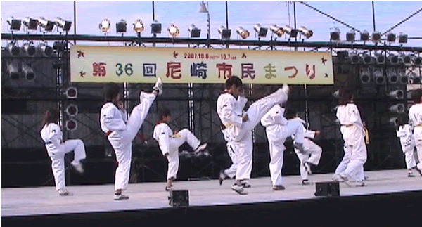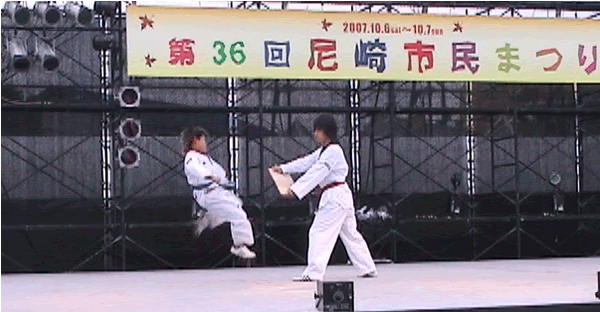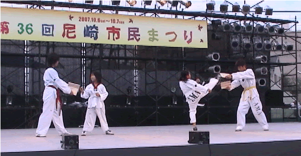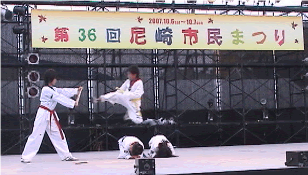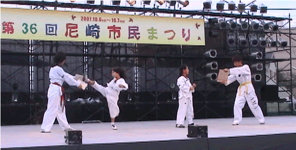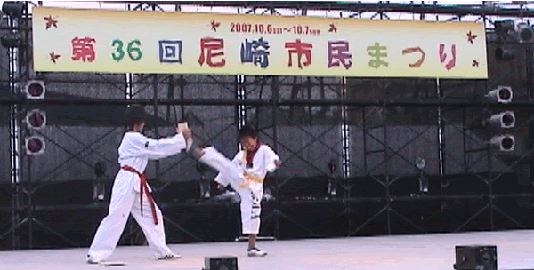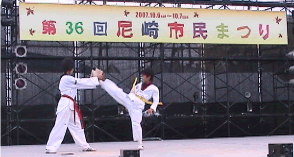 2007年 第36回尼崎市民まつりのステージで尼崎テコンドークラブAMAでテコンドーの演武を披露しました