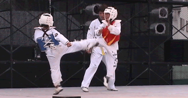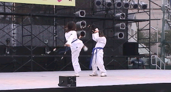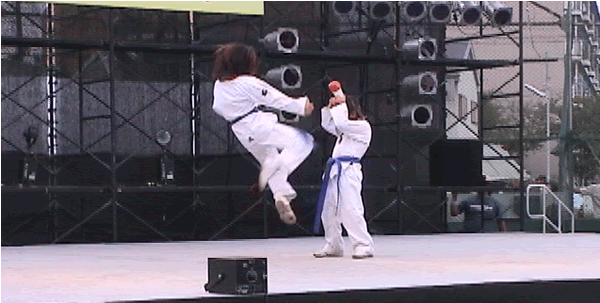 タツマのティオヨッチャギ (飛び横蹴り) (歓声があがりました)