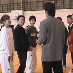 ![]() 昔の練習仲間と、楽しい思い出話がつきない。 現在は名古屋在住の、田上敬久(元キックボクシング 世界チャンピオン、 現・勇成會館館長) |