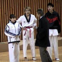 ![]() 2分2ラウンドの試合終了。 「師範どうでしたぁ〜」 「まぁまぁやな」 |